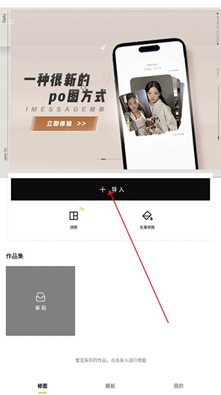 1、点击首页下方的+号导入图标,将需要抠图的素材导入进来。