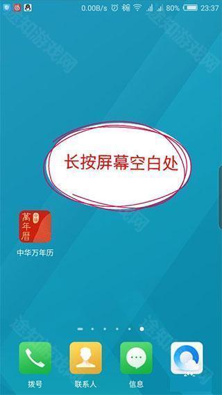 在手机桌面空白区域长按屏幕,触发小部件添加菜单。