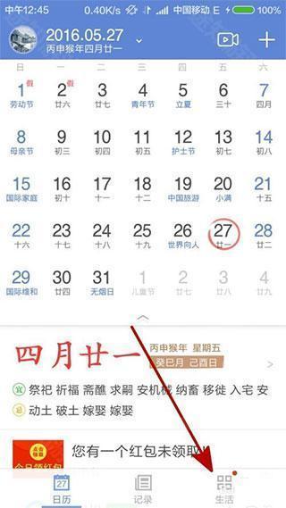 打开中华万年历应用,点击右下角“生活”选项,进入后在页面右上角找到并点击“加入常用工具”。