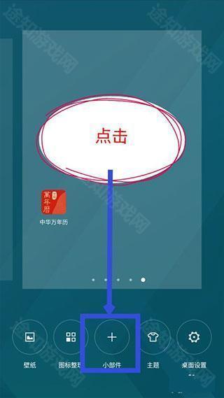 在小部件列表中找到“中华万年历”插件,根据提示拖拽或点击选中。