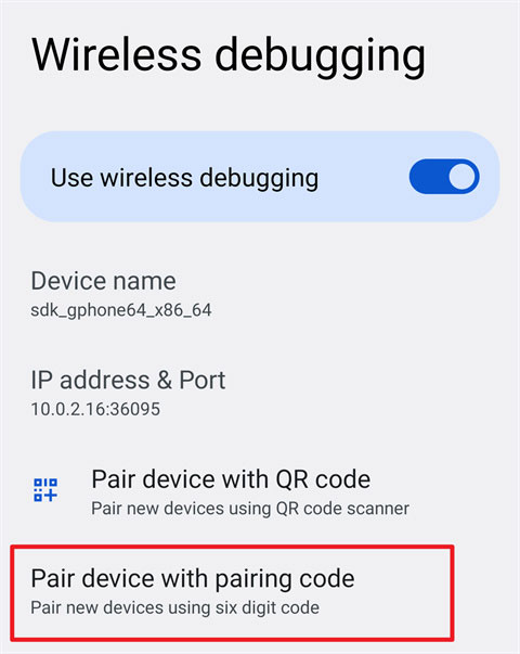 点按“无线调试”中的“使用配对码配对设备”