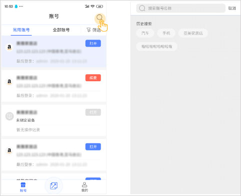 - 点击搜索图标,输入账号名称即可快速定位