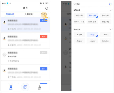 - 通过平台类型或自定义标签筛选,快速锁定所需账号
