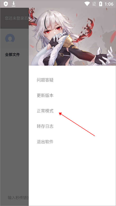 若登录百度网盘后仍提示未登录,可尝试切换应用模式。
