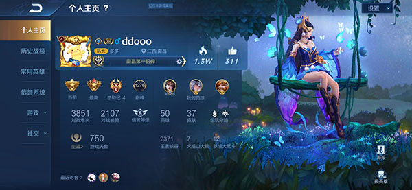 2、自由编辑个人信息,包括排名英雄、背景图、荣耀称号、定位地区等内容;