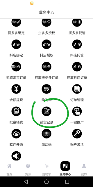 4、铺货完成后,可返回业务中心,点击“铺货记录”查看已上传商品的状态与进度,便于后续管理。