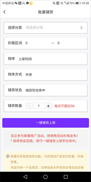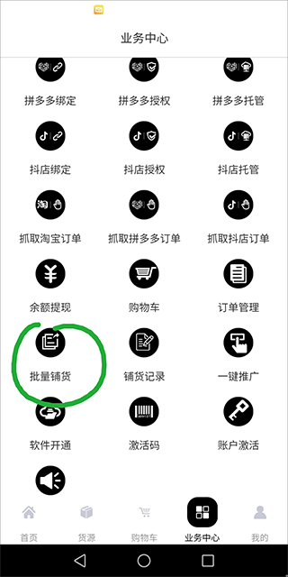 2、在业务中心页面中,选择“批量铺货”功能,开始铺货流程。