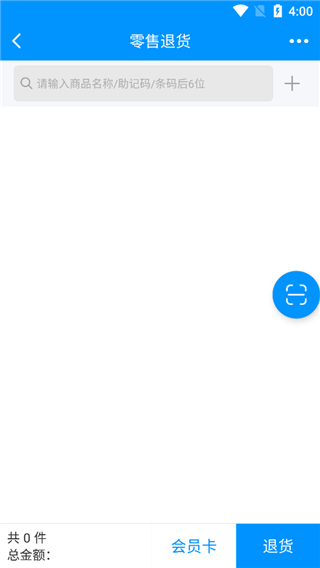 3、输入商品名称、助记码或条码后六位;若原单使用会员卡支付,还需填写对应手机号,确认无误后点击退货即可完成流程。