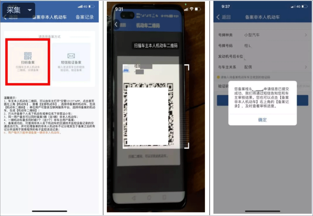 6、备案申请提交后,网办中心工作人员将在一个工作日内完成审核。审核结果将通过短信或“交管12123”APP消息同步通知备案人与车主。