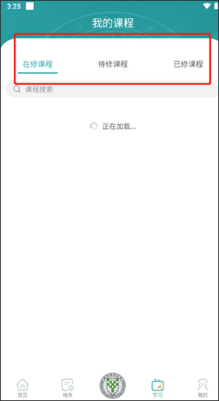 3、点击“学习”模块,可清晰浏览在修课程、待修课程及已修课程,全面掌握个人学习轨迹。