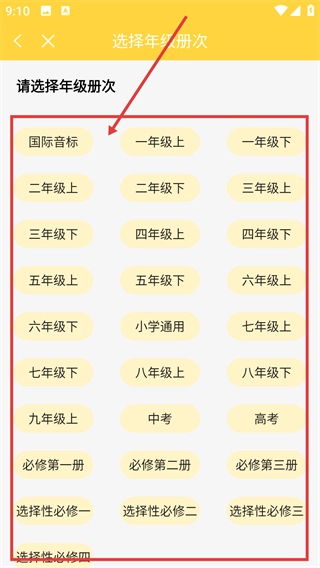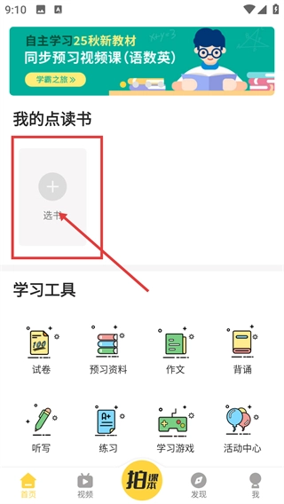 在首页点击【我的点读书】区域中的【选书】按钮,即可进入年级册次选择界面,开始挑选适合的教材。