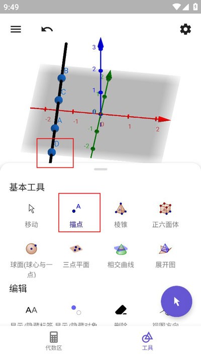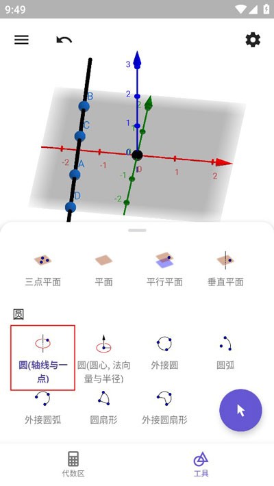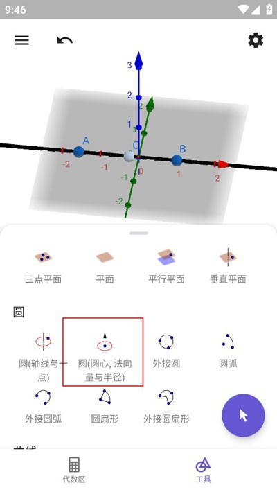 2. 可在3D空间中进行完整的尺规作图,轻松构建并分析多边形、圆、圆锥曲线、球体、平面等立体几何对象。