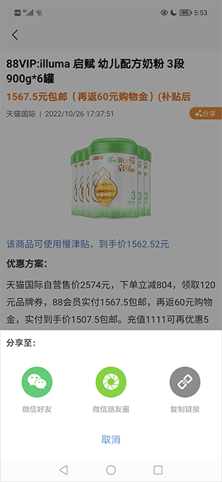 2、在商城中复制好商品链接;