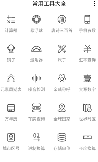 常用工具大全app是一款集三十多种实用功能于一体的工具软件,支持噪音检测、时区查询、各类计算及古诗欣赏,满足您在生活、出行与学习中的多样化需求。