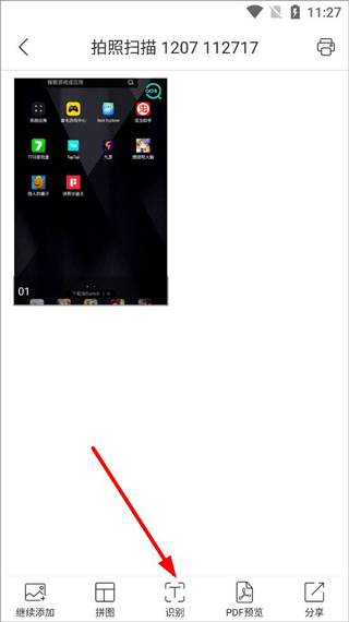 4、扫描图片之后,点击下方工具栏,可识别文字或转换成PDF格式;