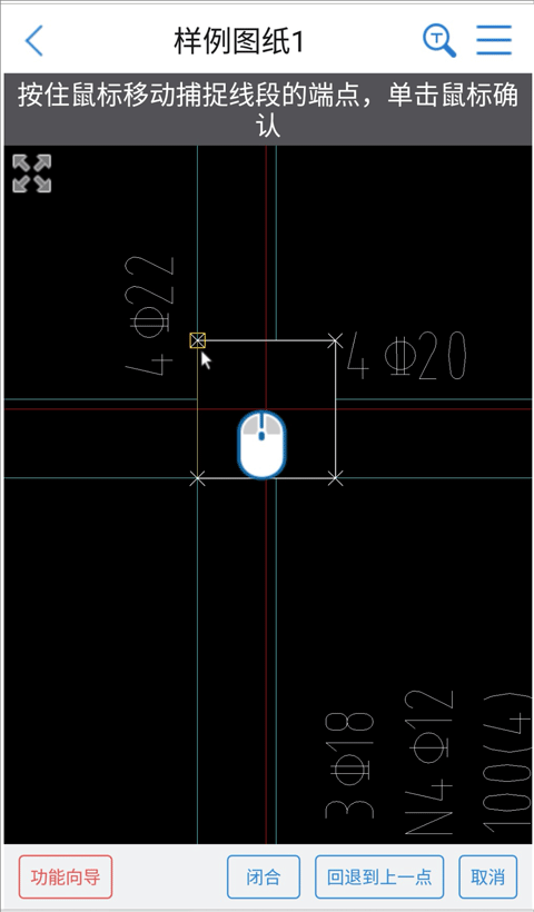 2、使用虚拟鼠标精准捕捉柱子的四个角点,形成闭合区域后,点击右下角的“测面积”按钮