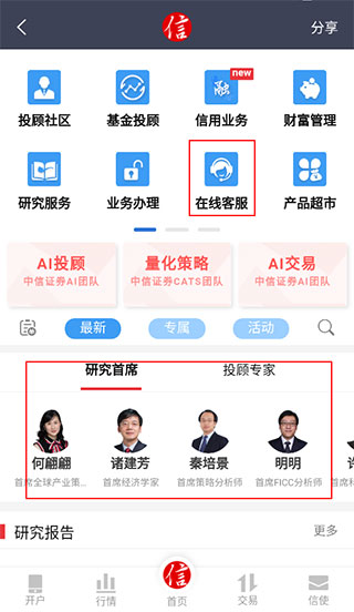 “信”服务:整合专属资讯、AI投顾、智能客服等定制化功能,根据用户画像智能推荐内容与策略,实现个性化投资陪伴。