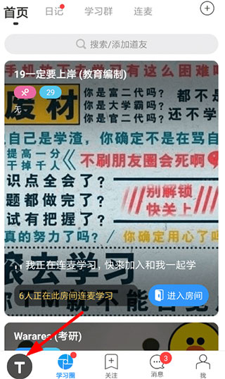 1、打开软件,点击左下角的“T”功能,即可进入学习目标页面,开始制定属于您的学习计划。