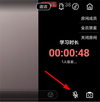 3、进入连麦房间后,点击右下角的按钮即可关闭自己的麦克风;点击右上角还可开启“全员禁麦”功能,便于集中注意力学习。