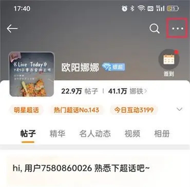3、进入到关注超话的首页,点击顶部右上角的【三个点】图标;