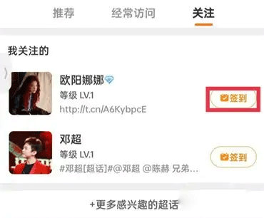 3、进入到自己关注的超话社区的页面之后找到【签到】;