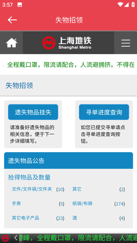 上海地铁找到乘客的“寻单”遗失物品,会发送短信提醒乘客登陆上海地铁官方网站查询认领。