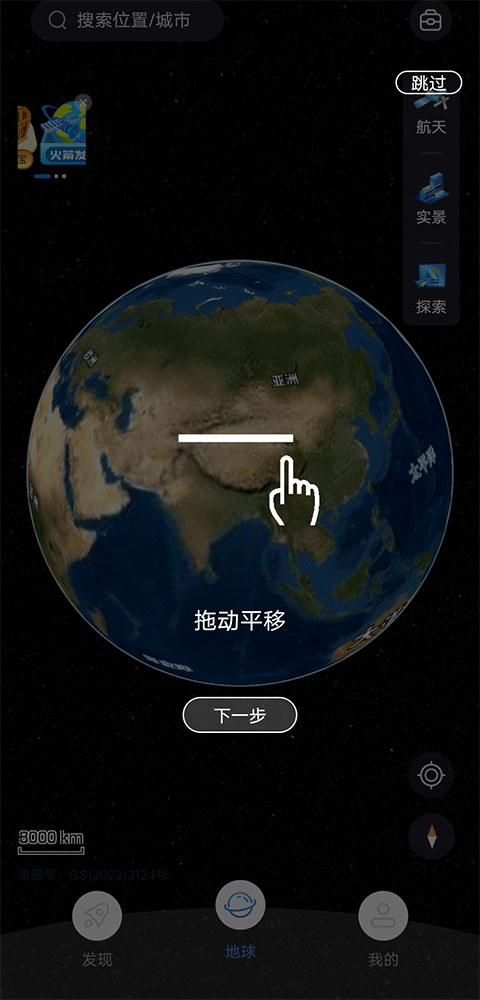 1、单指上下左右拖动,地球将随手指方向流畅转动,轻松切换视角。
