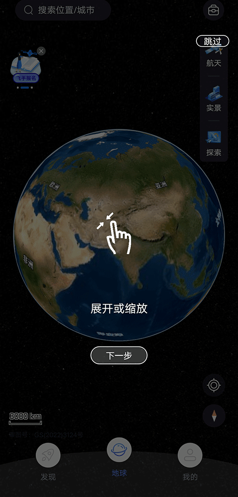 3、单指连续点击屏幕,即可快速放大地球视图,迅速拉近与目标地点的距离。