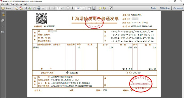 4、用户如需打印发票,点击PDF文档顶部打印按钮即可