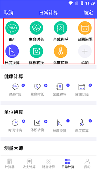 3、日常计算,包含生活中所需的各类计算需求,包含卡路里减肥时所需的BMI计算器,日期换算计算器:日期间隔、工作日推算;亲戚称呼计算,再也不用担心喊错长辈的称呼啦;还包含各类单位换算。