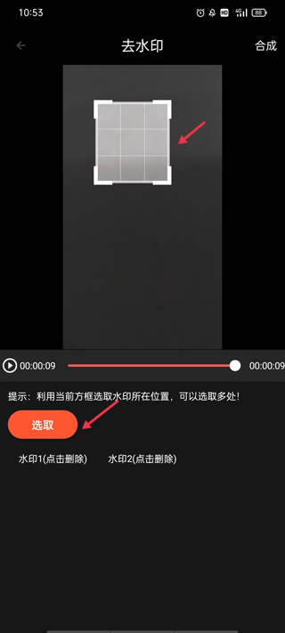 通过当前方框来选取水印所在的位置,可以选取多个区域进行处理。