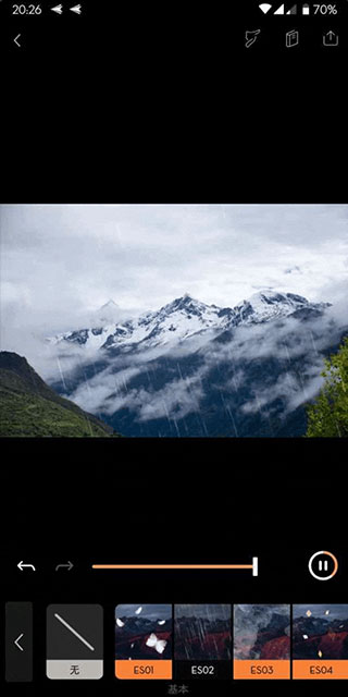 若想为画面增添“山中细雨,润物无声”的意境,可在“覆层”中选择“细雨”特效,并调节强度,避免喧宾夺主,保留照片原有美感。