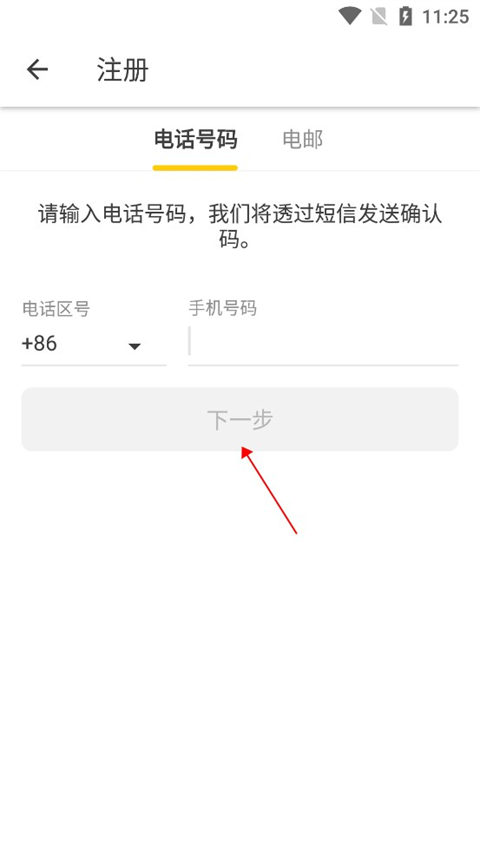 3、输入你的手机号码,点击“下一步”接收验证码。