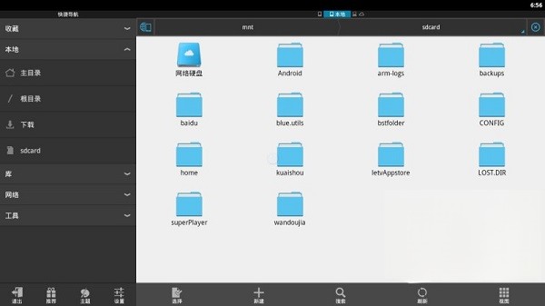 1、启动ES文件浏览器后,默认进入本机存储根目录。