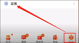 1、点击底部“我的”,进入后选择“设置”。