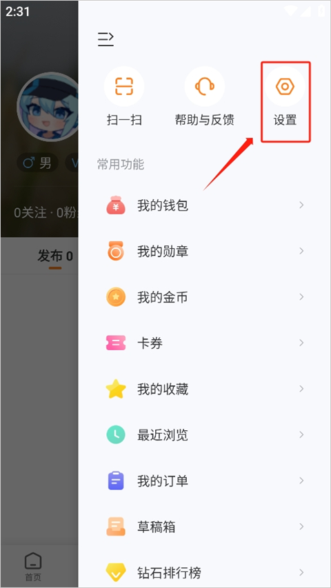 2、在弹出的菜单中,选择“设置”选项进入设置页面。