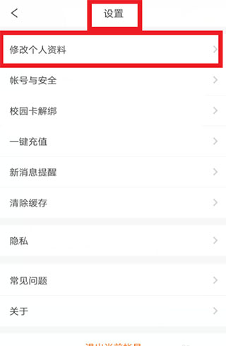 6、若需更换绑定学校,可进入“设置”页面,点击“修改资料”选项进行操作。