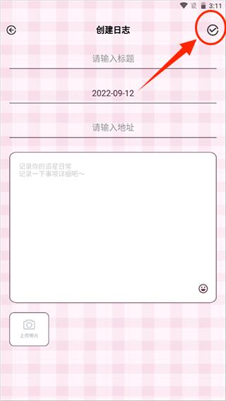 3、确认无误后,点击右上角的“确认”按钮,即可完成日记保存,随时回顾属于你和爱豆的专属回忆。