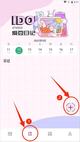 1、点击底部导航栏中的“日记”选项,再点击右上角的“+”号开始新建记录。