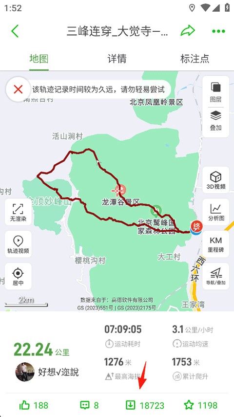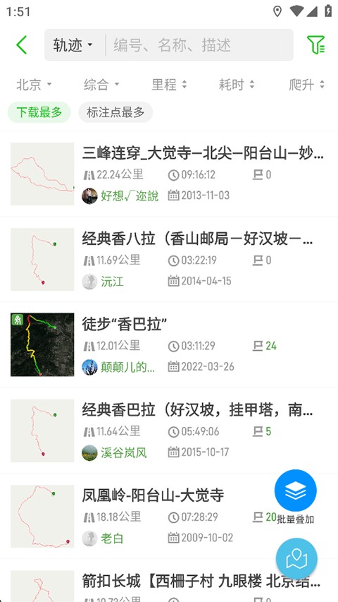 2.海量轨迹:汇聚数千万条精华户外路线,涵盖全国各类地形与难度等级,全部免费下载使用。