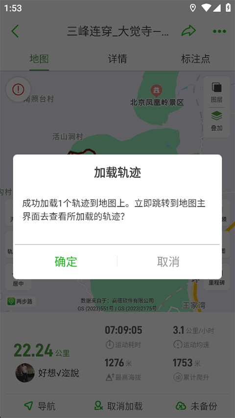 8、轨迹成功加载至地图,即可在行进中参考使用!