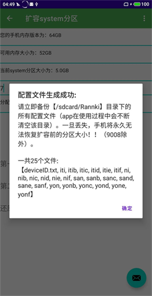 将生成的25个分区文件立即备份至电脑(系统会自动清理/sdcard/rannki目录)