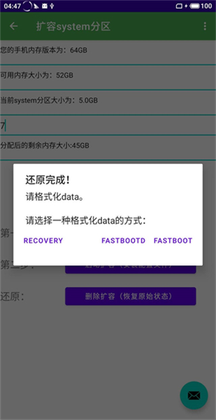 完成data分区格式化后刷入系统镜像。若出现fastboot循环重启,需关闭avb2.0验证。扩容完成后即可安装更大尺寸的system.img