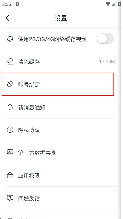 2、找到并点击账号绑定;