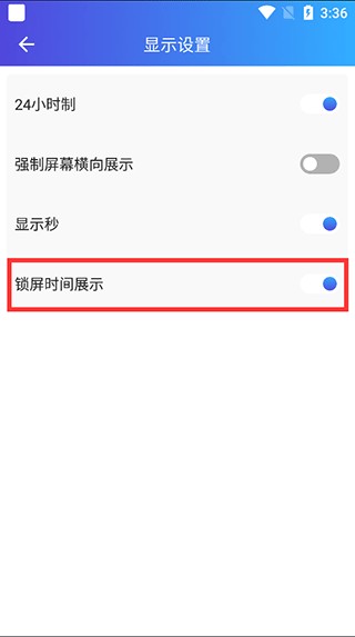3、在显示设置中开启“锁屏时间展示”开关,即可在锁屏状态下查看翻页时钟。