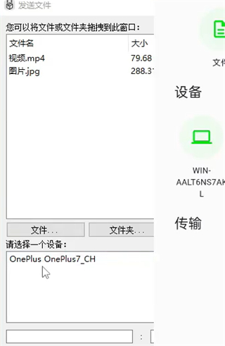 1、连接好后将电脑中的文件拖动到窗口中,并选择目标设备,即可发起发送请求。