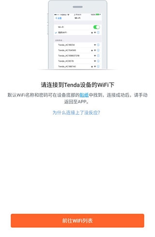 打开app后,点击【前往wifi列表】,系统将自动跳转至手机的WiFi连接界面。
