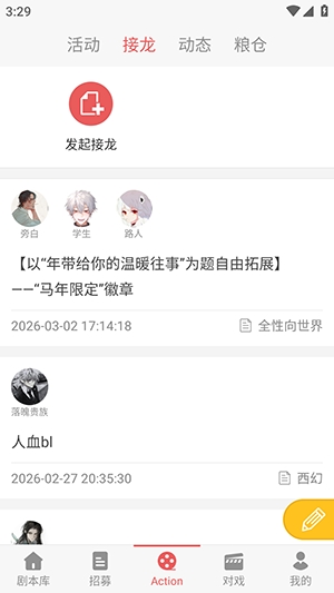 2、进入剧本页面后,可直接点击下方的“新建招募”发起对戏邀请。