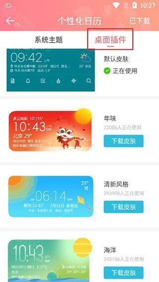 除了主题之外,也可选择自己喜欢的桌面插件样式。