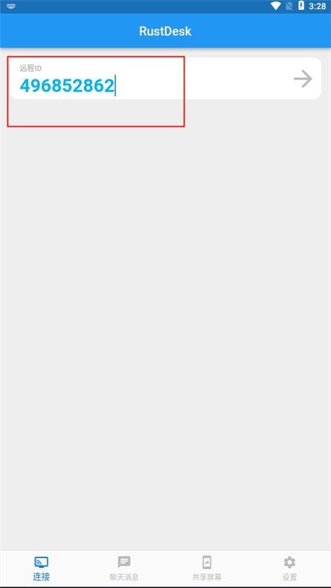 3、点击远程ID栏右侧的箭头发起连接,随后输入目标设备设置的访问密码(可在PC端RustDesk中查看或设置)。